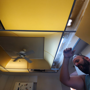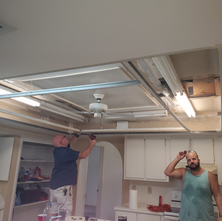 In the kitchen we have bulkheads (soffits? depends on who you ask) all around, with a ceiling fan in the center. By removing the fluorescent lighting (and really just the plastic covers and frame for now, the lights are still there) we essentially raised the ceiling by a foot in the middle. We'll still remove the soffits/bulkheads in the future, but this helped for now.