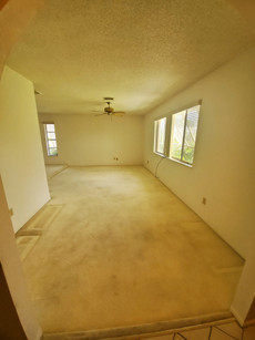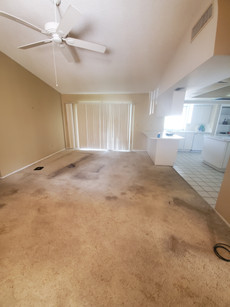 Once the windows were open I took down all of the blinds and we got right to work ripping out the carpet and tearing up the tack strips (dangerous little buggers!). Carpet is high on the list of items I despise only because it's just so GROSS even under the best of circumstances.