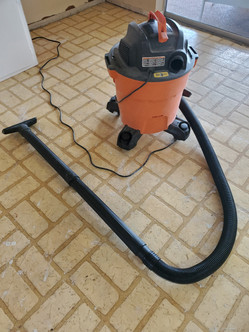 We broke out my new favorite tool, the ShopVac, and swept up all of the dirt and debris that was left under the carpet after removal and then mopped until we couldn't mop any more.