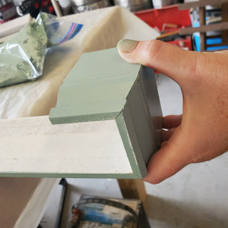 This week we sanded and repainted the trim we cut last week and finished creating the "feet" by cutting the small pieces that wrap around to the island.