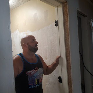 Check out the wall behind him, I started skim coating it and only got as high as I could reach without a step stool 🤣