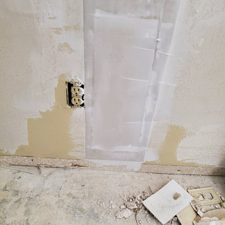Scott also had to cut, and patch, a big hole in the wall under the window. That part of the wall gave when you pushed on it and had previously been repaired with what looked like caulking, so I was terrified it was wet, and moldy. Luckily, we cut out that section, found no mold, and the drywall wasn't wet. I honestly have no idea why it felt the way it did on the wall, but it's been replaced with new, clean drywall and is looking great!