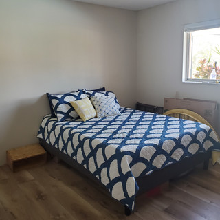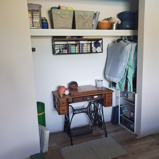 We moved the bed back into the room from the dining room where it had been while we worked on the floor, and I started unpacking and organizing my craft items.