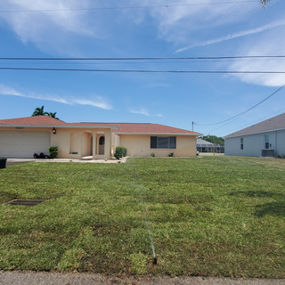 We had a big "bed" in the front with some palm trees that, while we loved them, the landscaper said they were past their prime and should be removed. So out they came. We removed the bump-out to the right of the house where there used to be scraggly bushes, but we removed them so we could pull the boat trailer to the side of the house. We also pulled any plants that weren't in good shape. Truthfully, we aren't left with much, but that will change!