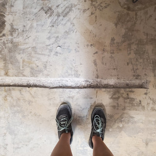 I'm kidding, kind of. But we did have a serious talk about the kitchen layout that involved measuring, pacing around, and a final determination that we need to move the fridge. Honestly, what did he think he was getting himself into by asking where I wanted the island?! We settled on moving the fridge (later), and an island location, and got to work cutting the trench.